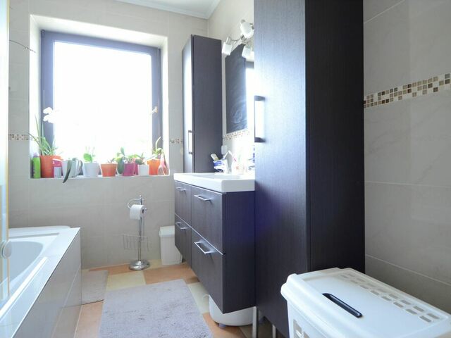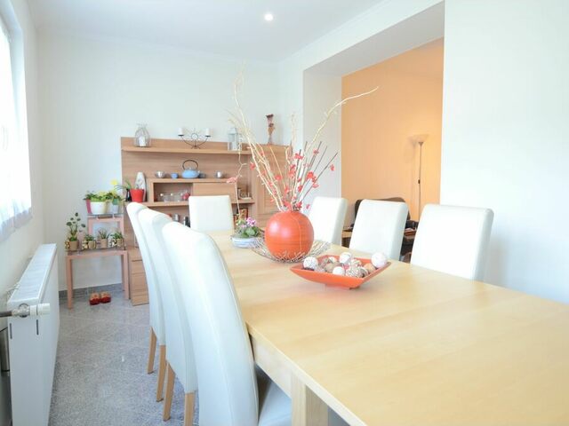 Dieses Haus mit einer Gesamtfläche von ± 195 m2, wovon ± 160 m2 Wohnfläche, besteht im Erdgeschoss aus einer Eingangshalle, einer separaten Toilette, einem Doppelwohnzimmer mit Esszimmer und einer großen Einbauküche.